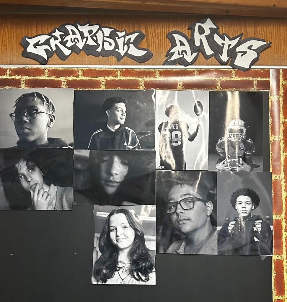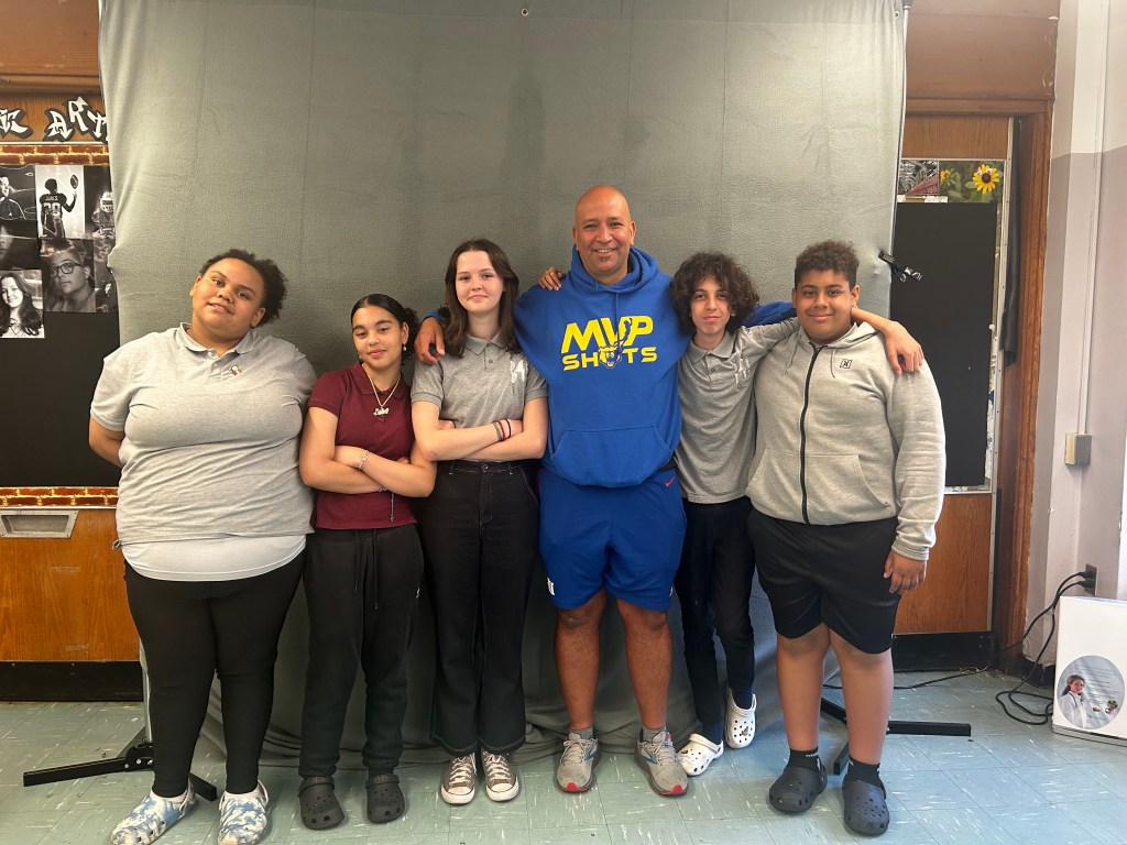 “During Covid, most schools didn’t have picture day. But we wanted to offer our 8th graders at least an opportunity to have graduation photos,” Mr. Guzman says. “I told Principal Rodriguez we can use the small gym, they can go one by one, we’ll wear masks. We did graduation photos that year. The next year I went to her and I said instead of reaching out to a photo company, let’s teach the kids how to take the photos. It was amazing in that short span of time how much they grew and learned and the photos that they created. I was blown away by what they did.”